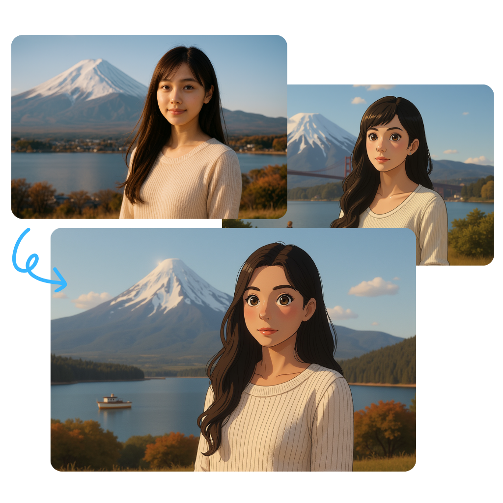 - Magical Ghibli Style TransformationsCapture the iconic hand-drawn feel of Studio Ghibli films with authentic Ghibli Style soft colors, dreamy textures, and that special whimsical atmosphere that defines Miyazaki's world.